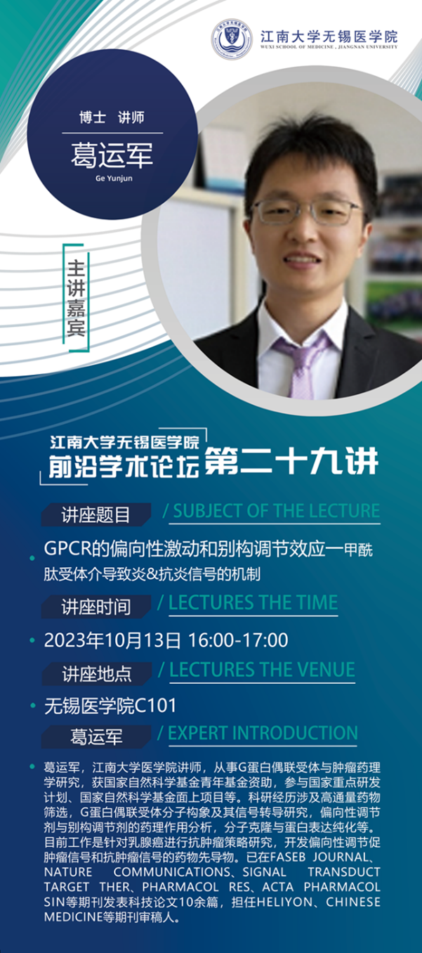 10月13日PA视讯前沿学术论坛第二十九讲 葛运军教授——GPCR的偏向性激动和别构调节效应—甲酰肽受体介导致炎&抗炎信号的机制