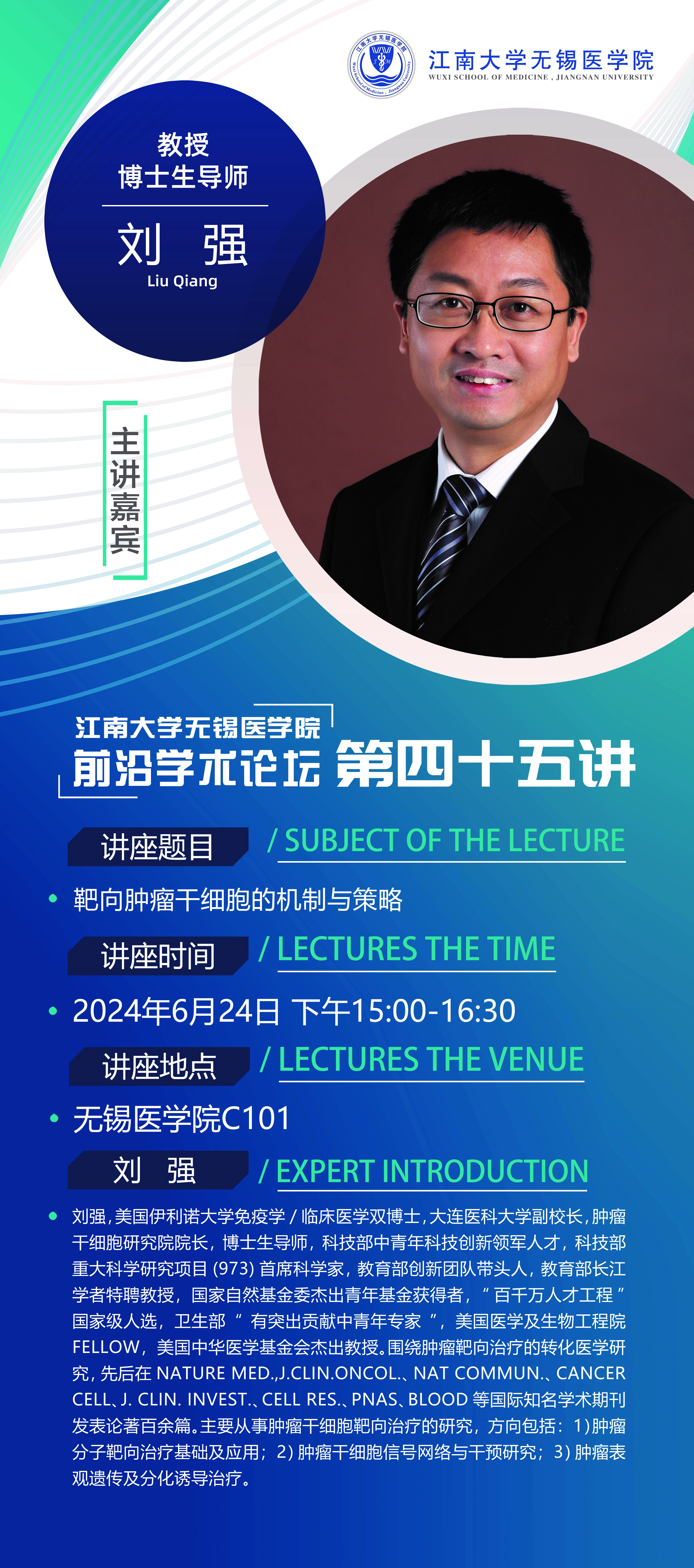 6月24日 刘 强:靶向肿瘤干细胞的机制与策略 陈丰原:科研选题的原则与要素