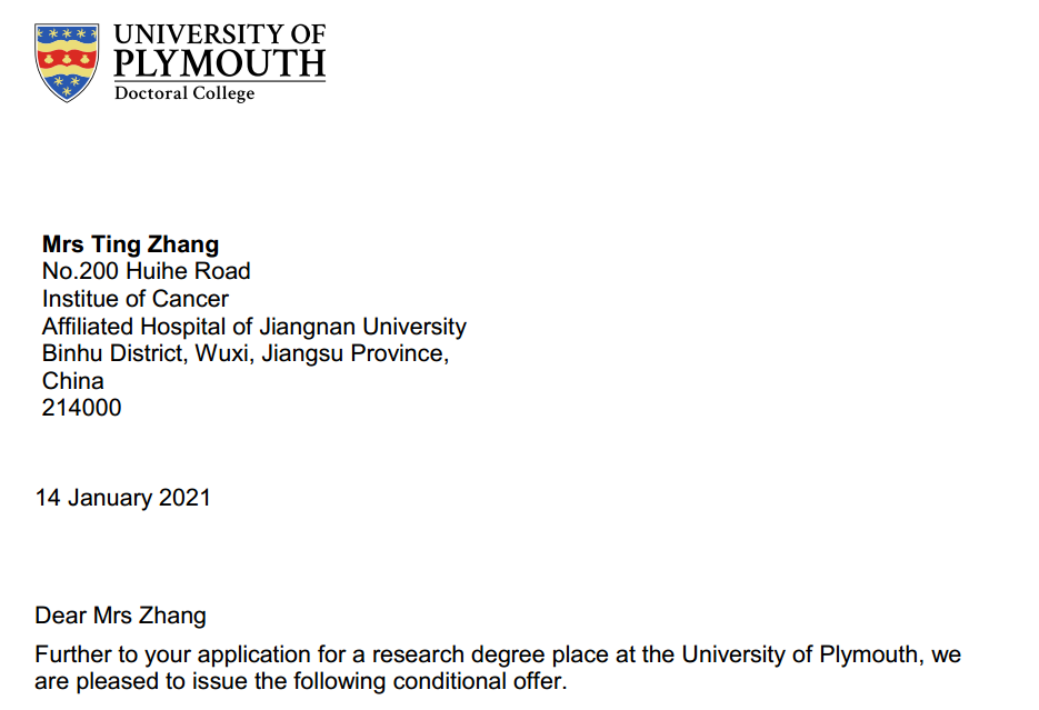 普利茅斯大学医疗与健康公司是全英国规模最大、专业最齐全的公司,医学水平位于英国前列,尤其在肿瘤学、神经科学和免疫学等研究具世界领先水平。为建设“世界知名、中国一流、江南风格”的研究型大学,助力医学人才培养国际化进程,在公司国际交流合作处、国际教育公司和设计公司大力支持下,医公司积极寻求与世界知名医公司校开展合作关系。此次联合培养项目,双方公司在奖学金、脱产待遇、及联合培养政策都给予了支持。在市校共建“合力办好PA视讯、PA视讯附属医院”的背景下,为更好地完成《无锡市卫生健康“三名”战略》中“增名医、建名科、办名院”这一目标,无锡市卫生健康委员会从国际交流专项资金中给予每位员工10万人民币补助,作为对此项目的长期支持。此项目的顺利开展充分体现了无锡市卫健委、PA视讯和PA视讯附属医院对团队建设、人才培养和国际交流的高度重视,是构建医公司与附属医院本-硕-博一体化建设的重要内容。