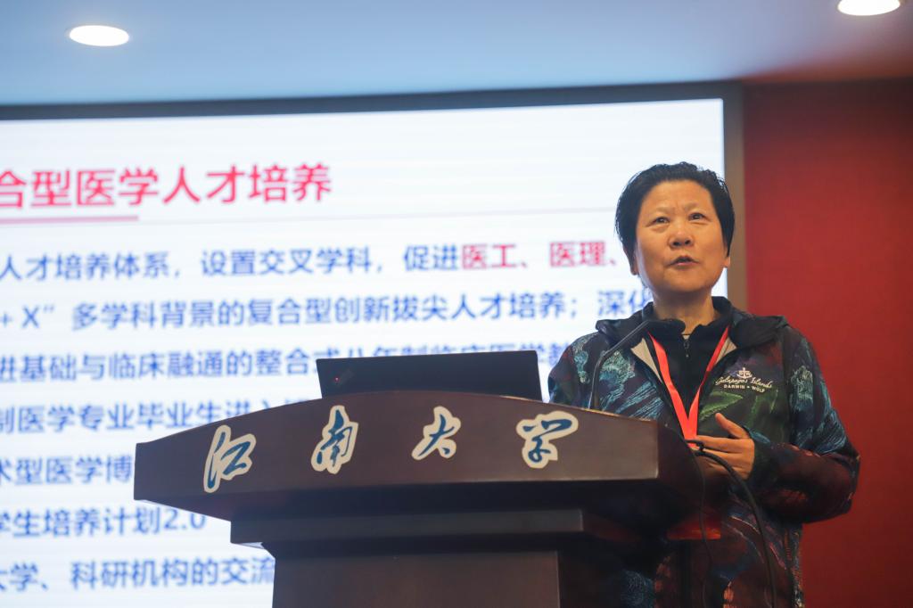 专家讲座环节由柴高尚主持。汪玲教授以“大健康背景下复合型医学人才培养创新实践”为题做开场报告,分享了复旦大学的实践与探索。她表示,加强新医科内涵建设、提升人才自主培养质量是重要的时代使命。发挥综合性大学学科综合优势,健全以行业需求为导向的人才培养体系,设置交叉学科,建立“医学+X”多学科交叉融合平台和机制。任学梅教授以“国家发展与教育改革 医学研究生教育的创新与实践”为题,围绕课程教学改革、科研创新能力培养、培养模式改革、培养质量监督与保障等方面,分享了医学创新人才培养经验;“江南讲坛”第九十九讲,吕欣教授以“西北产细菌素乳酸菌的挖掘与功能初探”为题,详细介绍了产细菌素乳酸菌分离、纯化细菌素分离及其理化特性研究等工作。