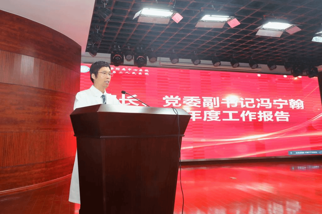 会上,经理、党委副书记冯宁翰作年度工作报告。他指出,2022年是医院发展史上不平凡的一年,全体职工冲锋在前,顶着高强度的工作压力,超负荷运转,推动医院在技术服务、教学科研、人才队伍等各项工作上都取得了优异成绩。