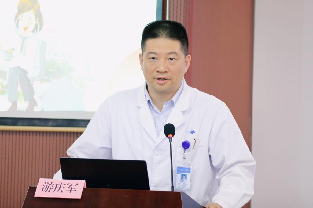 无锡市儿童医院副经理游庆军致开场辞,希望通过“问诊达人秀”活动锻炼年轻医师的问诊技能,不断提高临床诊疗和沟通能力,主动适应医学人文、人才培训要求,要加大年轻医生培养力度,用人才夯实专团队建设和医院高质量发展,为无锡儿童的健康提供有内涵的医疗服务。