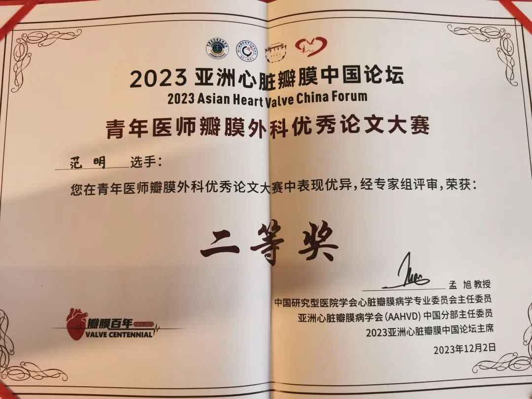 近日,由中国研究型医院学会心脏瓣膜病学专业委员会主办的2023亚洲心脏瓣膜中国论坛在成都顺利召开。论坛设立了全国青年医师瓣膜外科优秀论文大赛,PA视讯附属儿童医院(无锡市儿童医院)心胸外科范明医师撰写的论文荣获《青年医师瓣膜外科优秀论文大赛》二等奖。