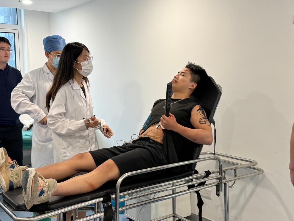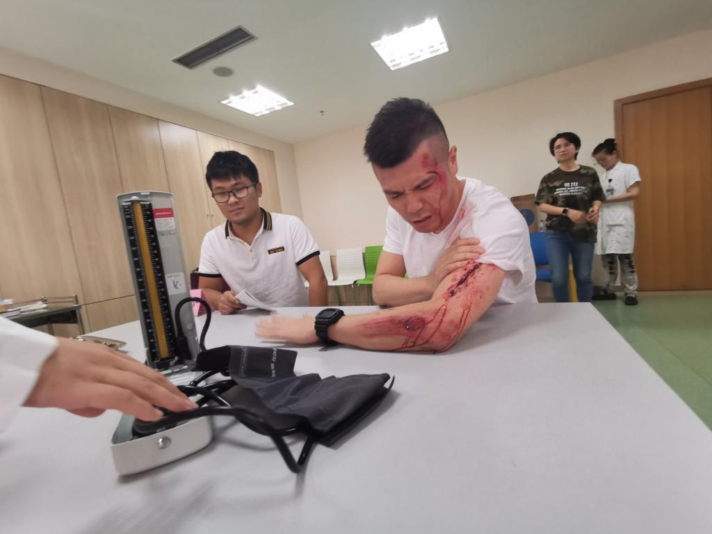 此次本科阶段的情景模拟课程,是无锡地区首次将情景模拟教学与临床本科课程进行有机融合的尝试。所有案例都精心设计,力求贴近临床实际。其中一个案例讲述了一名肝硬化患者因为腹痛就诊的过程。围绕此案例进行了剧本设计,高度还原病房环境,饰演患者的同学进行了精准的化妆,黄疸、蜘蛛痣、肝掌等体征逼真呈现。在案例演绎的环节中,通过现场角色的融入,体格检查、患者主诉、实验室检查、患者情绪变化等让医员工们在实战情景中学习如何迅速评估、诊断疾病、采取规范的治疗措施等。通过此次案例演绎,医员工们不仅掌握了腹痛的诊疗思维与肝硬化的诊断要点,还熟练掌握了腹水穿刺的基本技能, 也对与这类患者的沟通技巧有了进一步的了解。